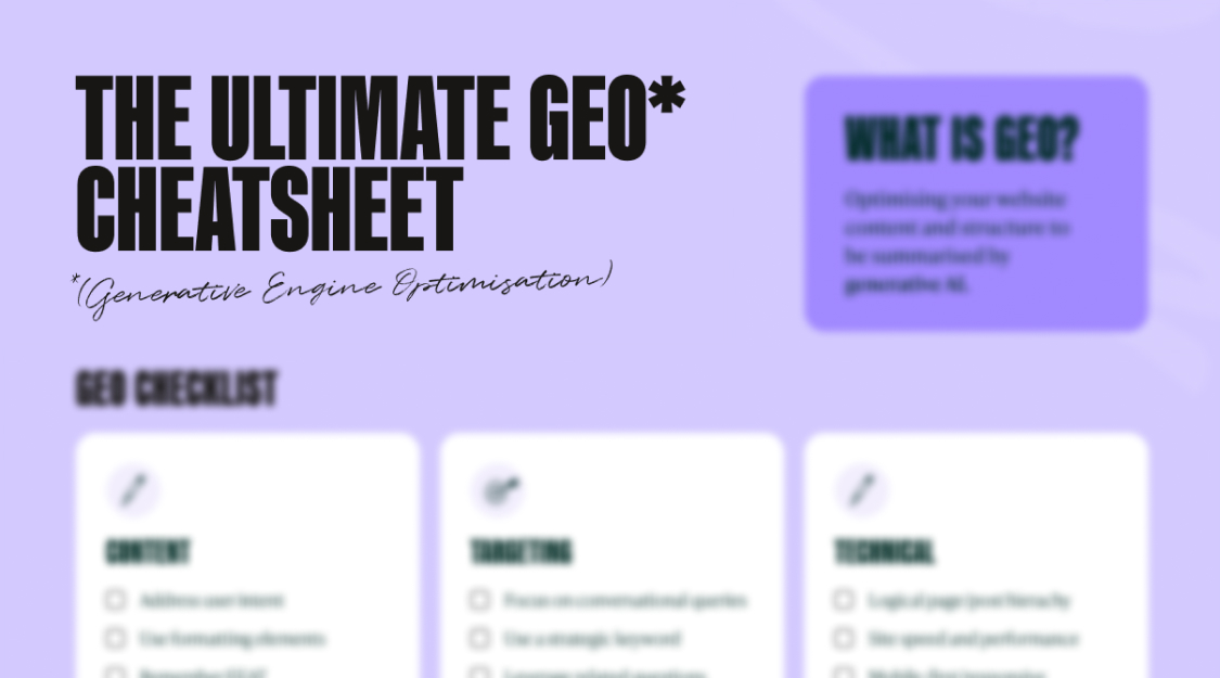 Download our handy cheatsheet to get everything you need to know about GEO at-a-glance.