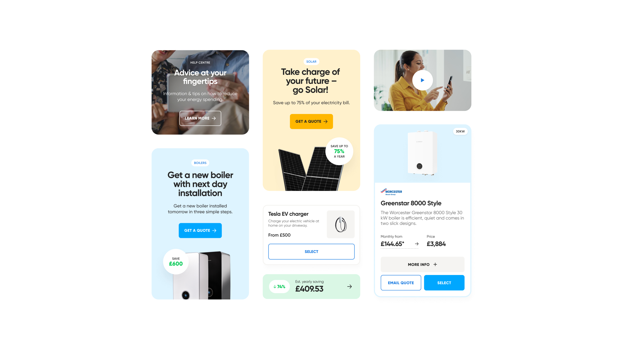 Consumers expect a perfect experience – and you want to stand out against your competitors. We develop websites and digital products that guide users through onboarding – from landing on your site to getting a quote or booking an installation. Combining data and insight with a focus on users, we create onboarding journeys and funnels that deliver results.