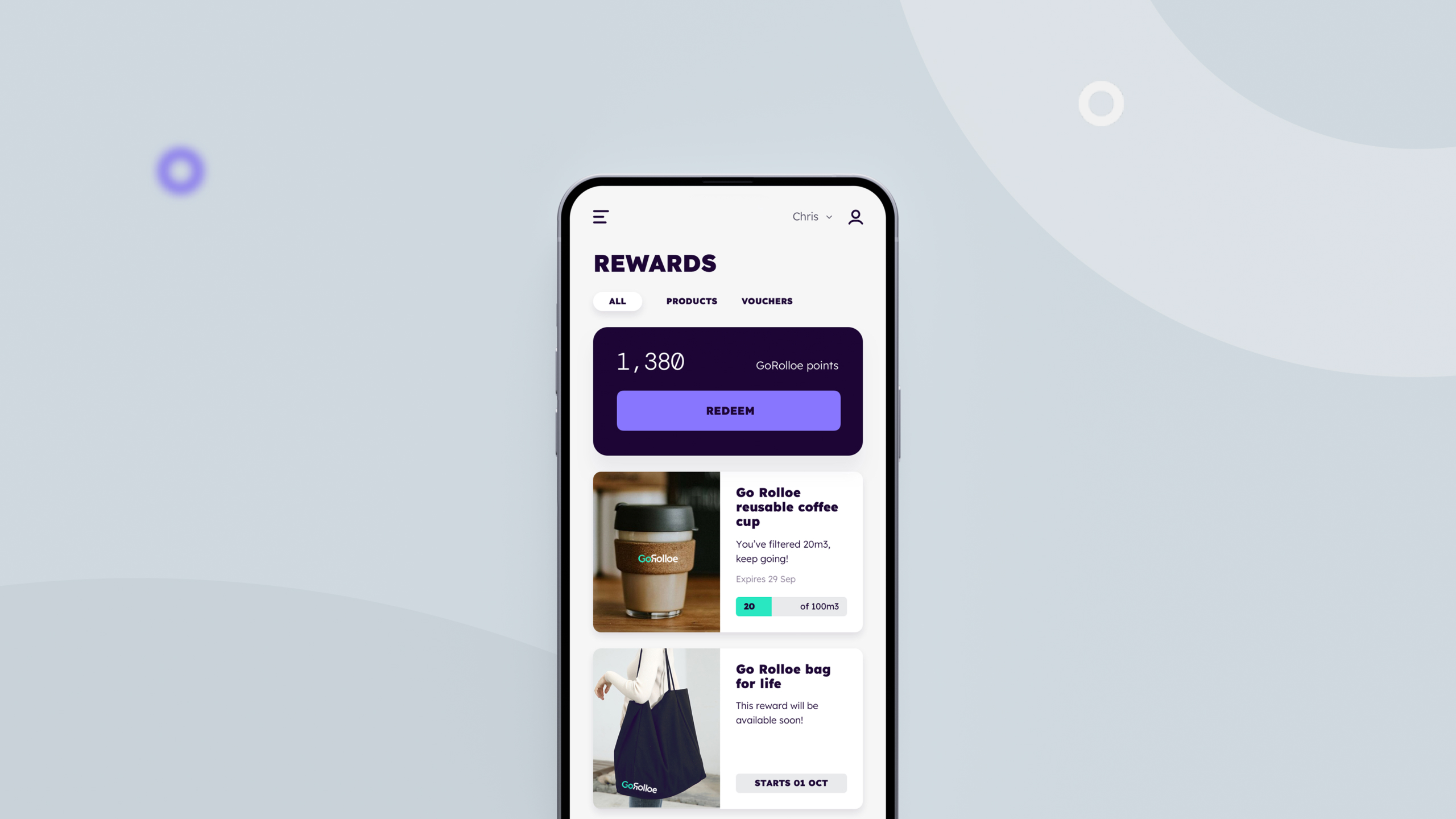 With a view to making cutting air pollution a fun challenge, we mapped out core features of the app centered around user stats and gamification. Usage stats needed to be presented in a clear and familiar way – with our target audience being well-versed in the likes of fitness tracking, they would be used to stats at-a-glance. The gamification functionality would see users trading in their m3’s of air filtered as “points” to claim rewards. Finally, we scoped out the e-commerce element – enabling users to order new filters for the GoRolloe product from right within the app.