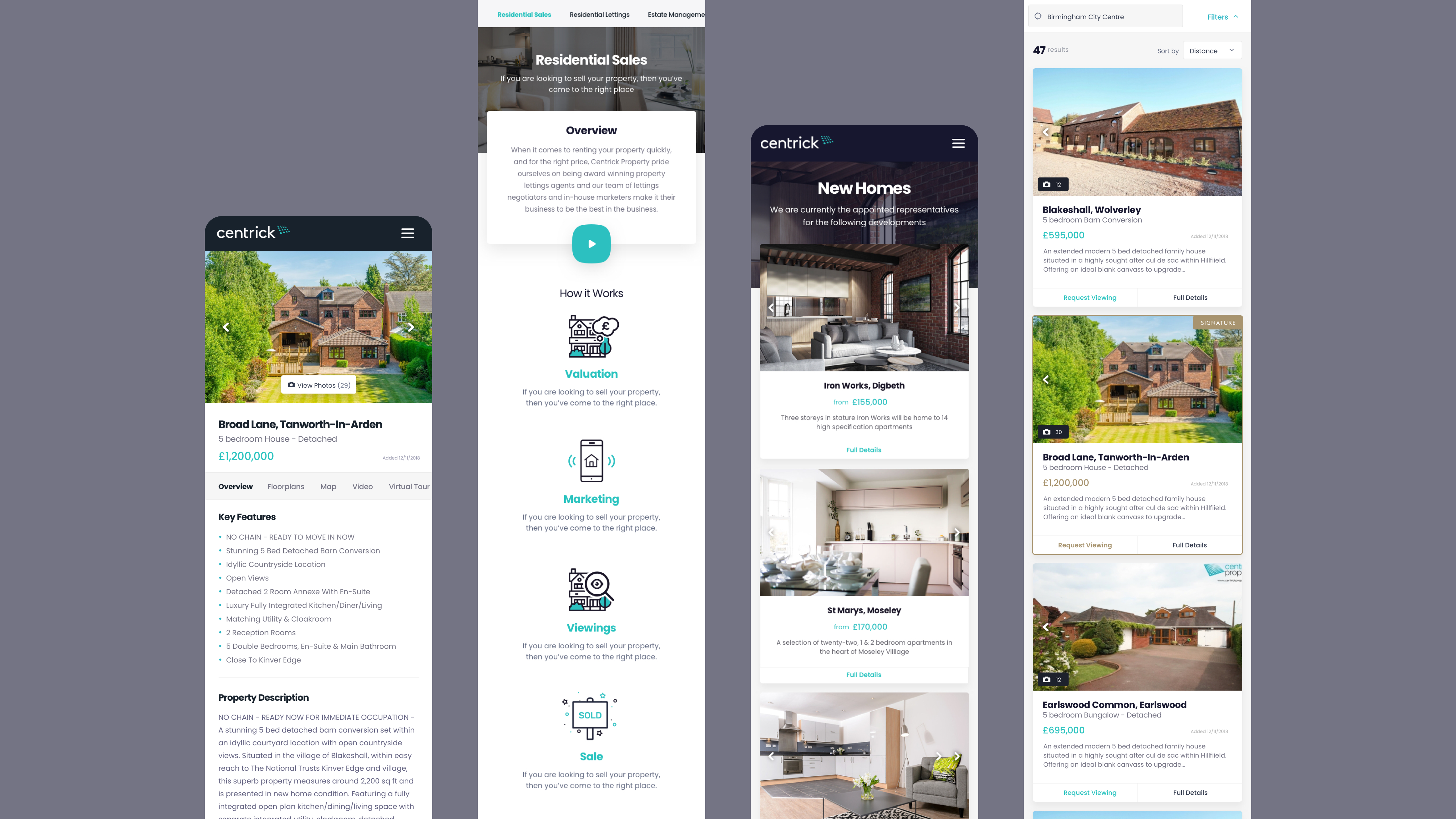 With a wide variety of property data held across the business, our first challenge was to review and map the information/assests Centrick presents to users. Some homes were classed as standard listings, others formed part of Centrick’s signature collection brand.