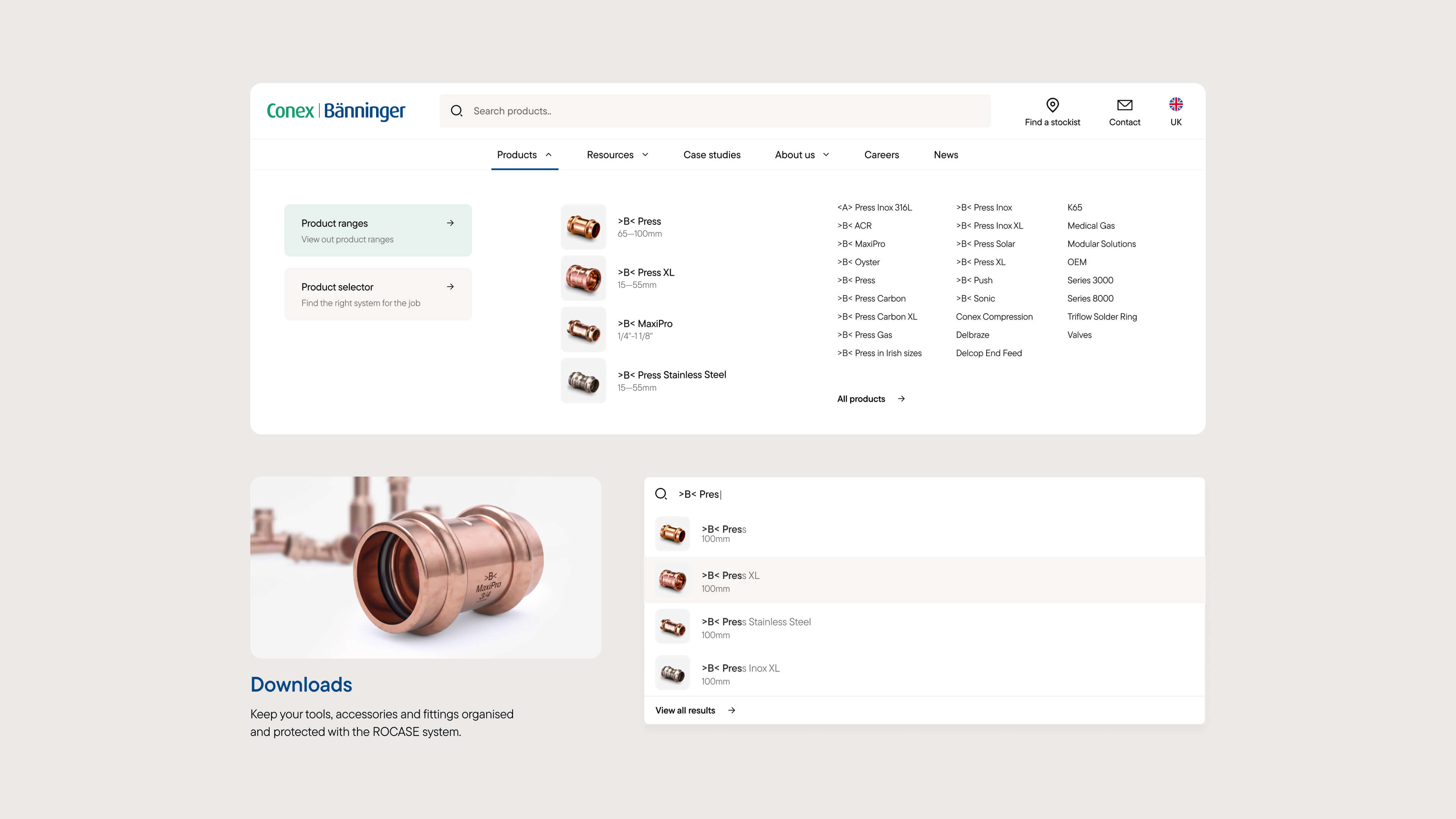 Conex Bänninger is a global manufacturer and supplier of fittings and valves for plumbing, heating, air conditioning and refrigeration. They needed an elevated and futureproof digital experience which would align websites for their separate global business units in one platform, ensuring consistency in messaging and simplified management of products.