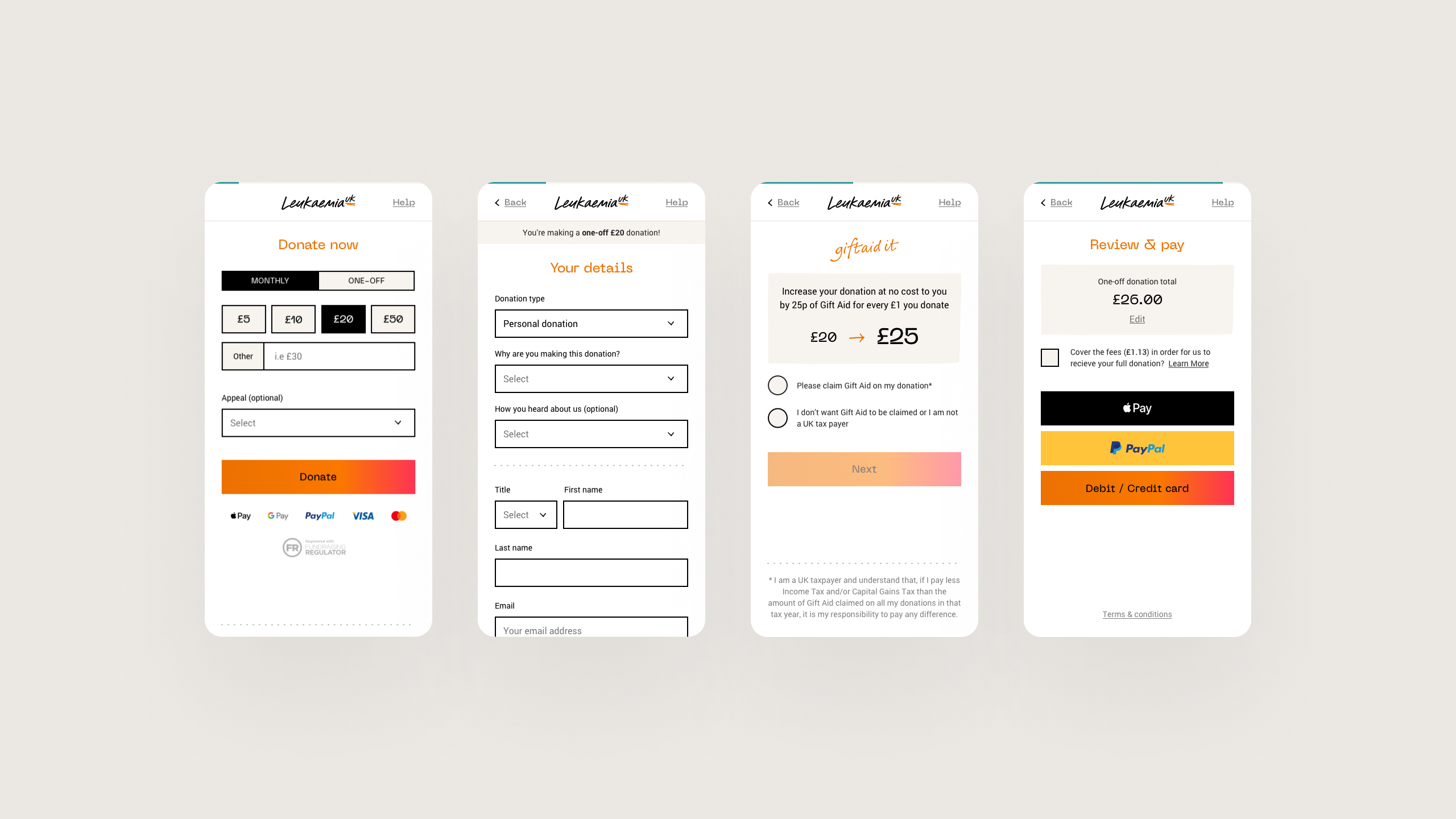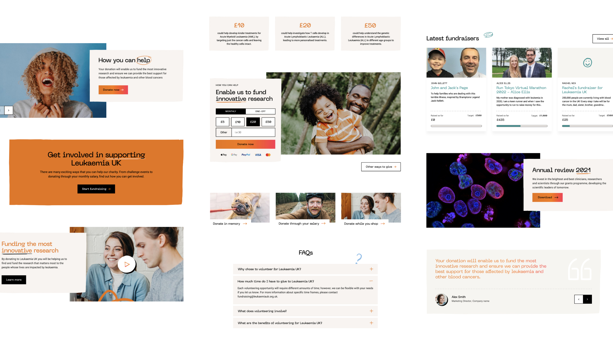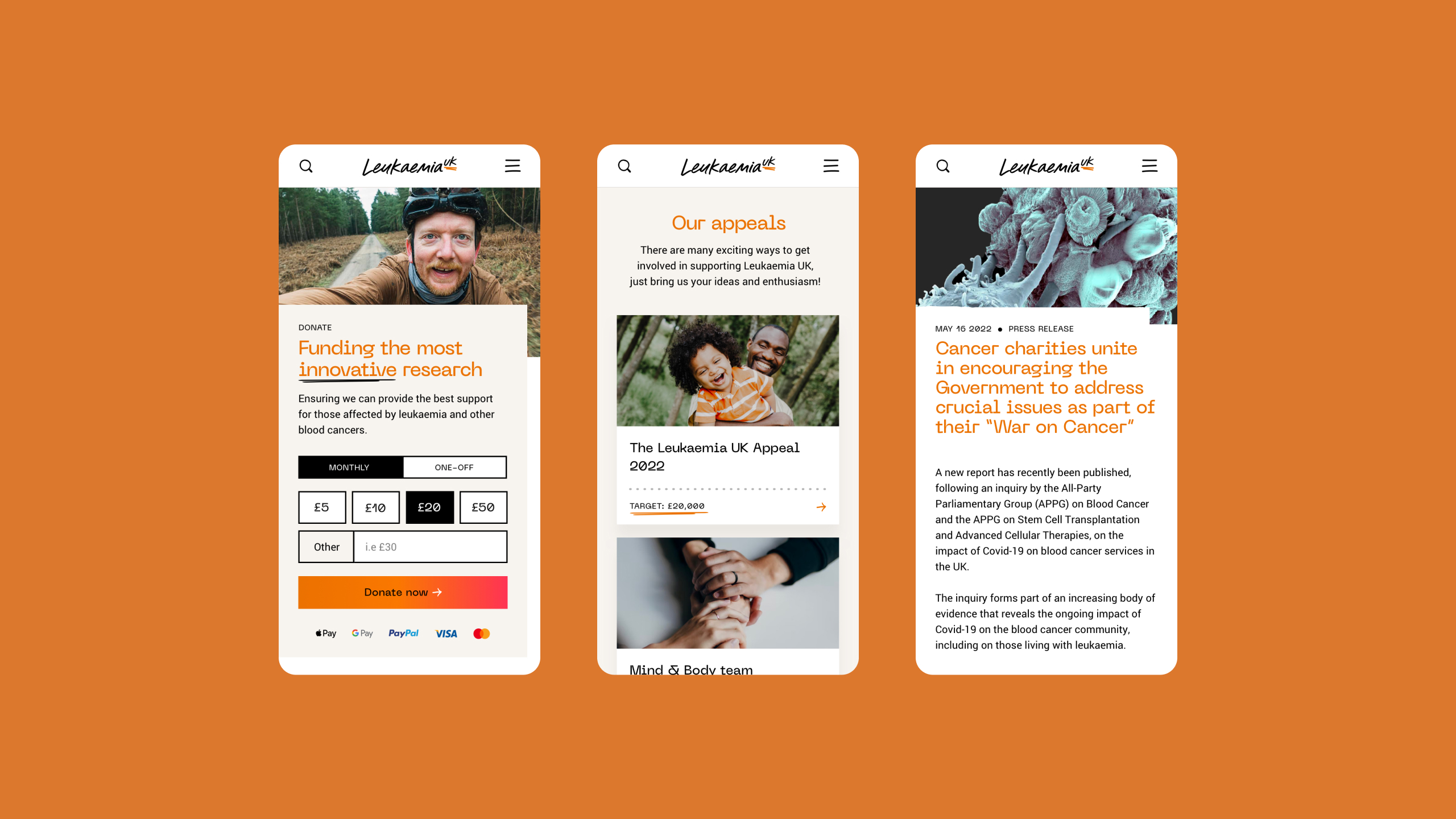 Income from donations is obviously key to enabling Leukaemia UK to continue their vital work. We designed the donations funnel to be simple, usable and accessible so that people can make a donation in just a few clicks. Early on in the process, we identified the need to host donations on a dedicated CMS away from the main content, meaning fewer technical limitations, fewer bottlenecks and an all-around improved experience for people generous enough to donate.