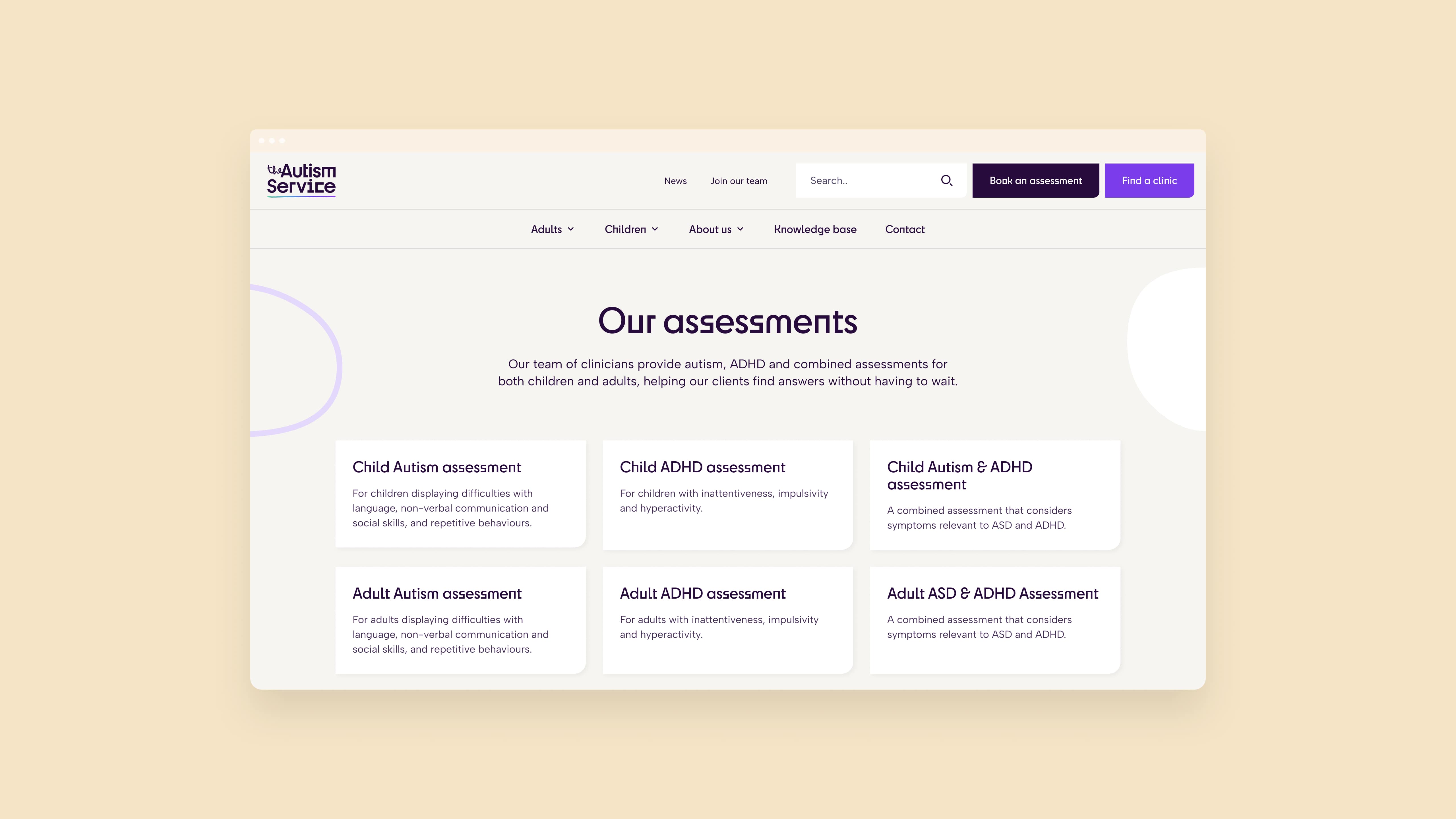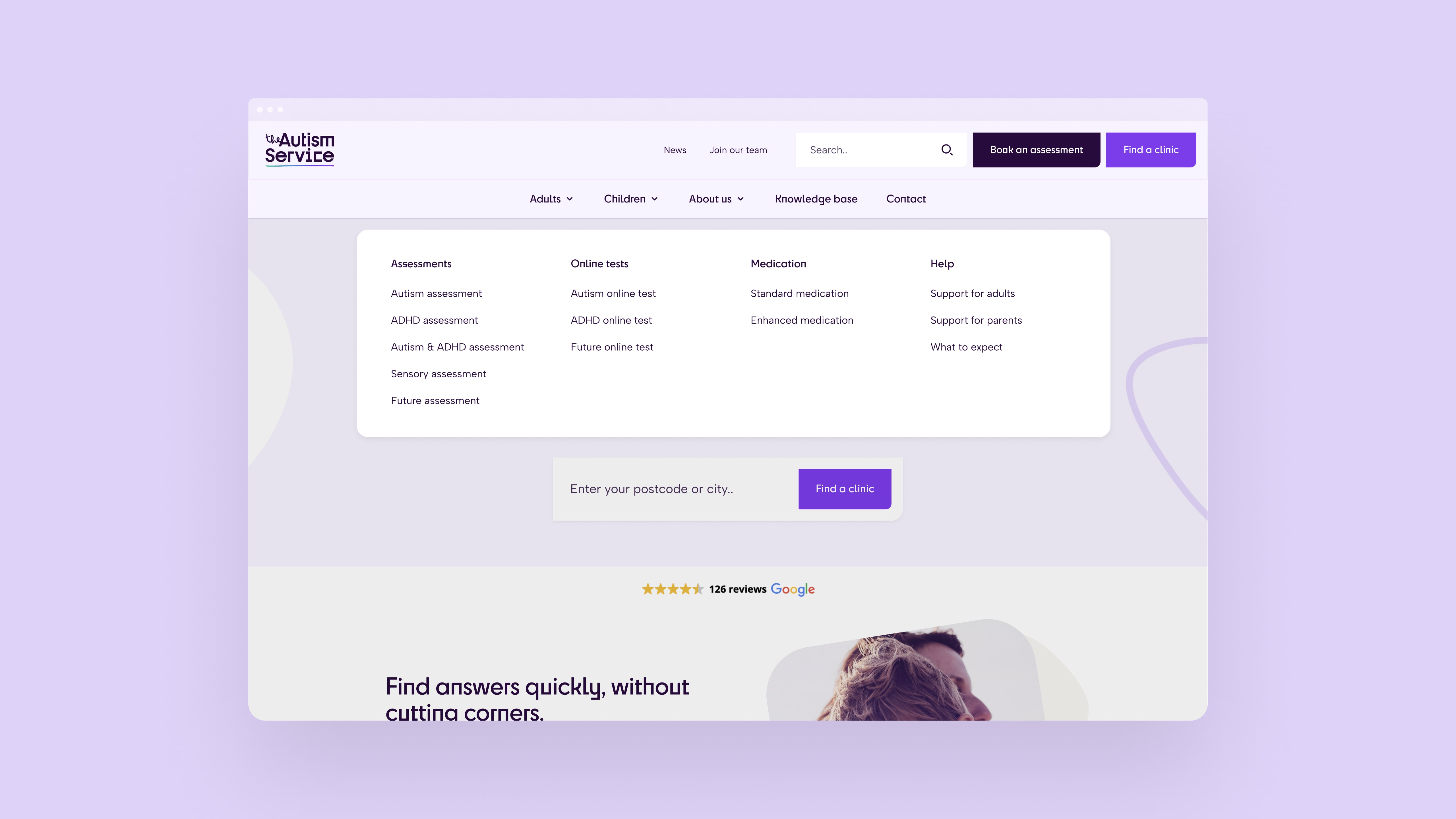 The Autism Service provides reliable, private autism and ADHD assessments for children and adults. With a team of over 60 healthcare professionals and 27 clinic locations across the UK, they needed a platform that would make their nationwide assessment services easily discoverable and bookable, while also offering accessible information and resources on autism and ADHD in a centralised hub.