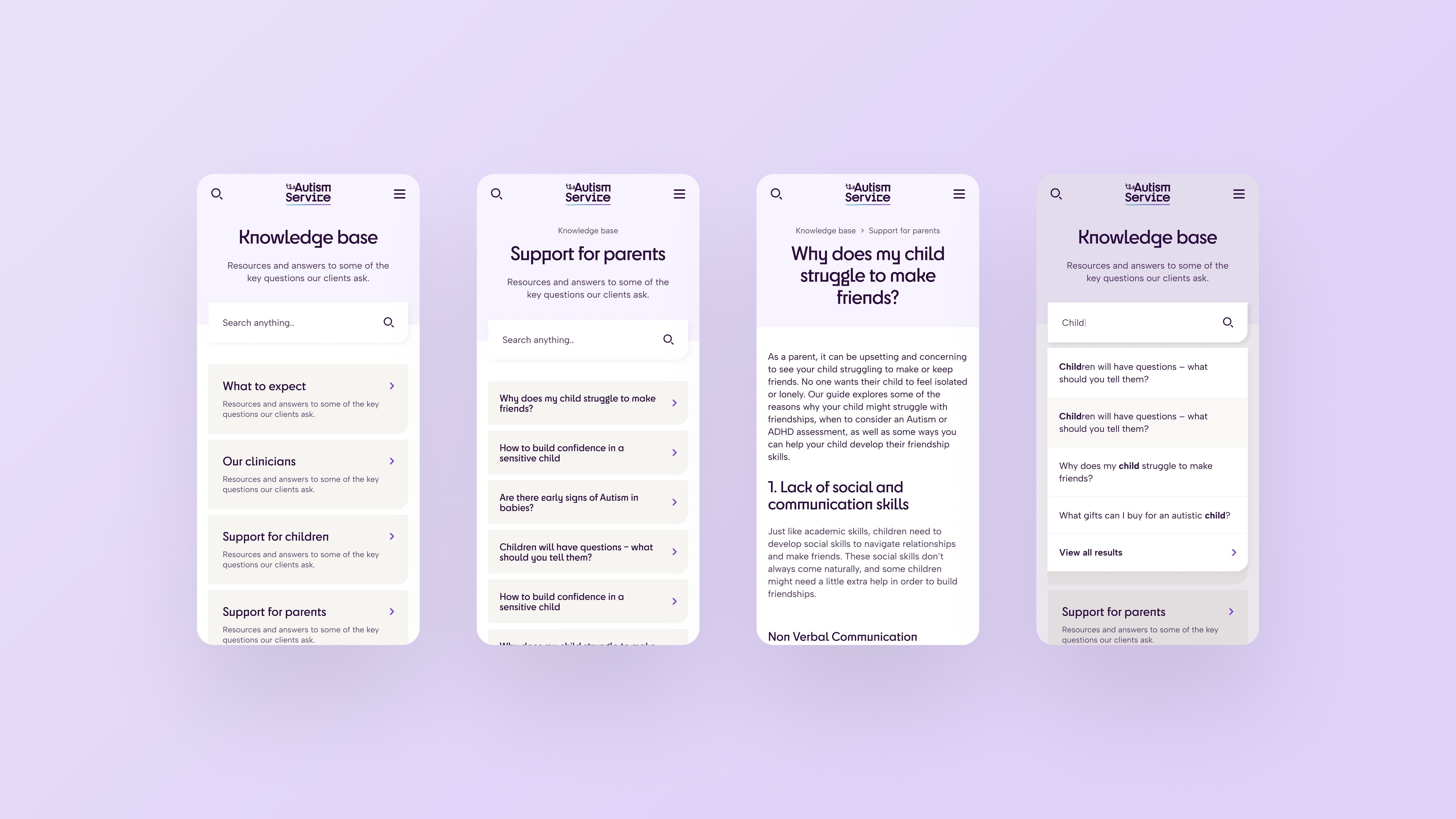 Our website design and development process is data-driven, with the user at the forefront. Examining user behaviour on previous iterations of their website, we found that some were struggling to find key resources. These frustrations, combined with the addition of a raft of new features and functionality led us to develop a mega menu which neatly displays and categorises the range of services and resources available. It also makes it easier for The Autism Service to add more pages and sections to the site as they expand without the navigation becoming too unwieldy.